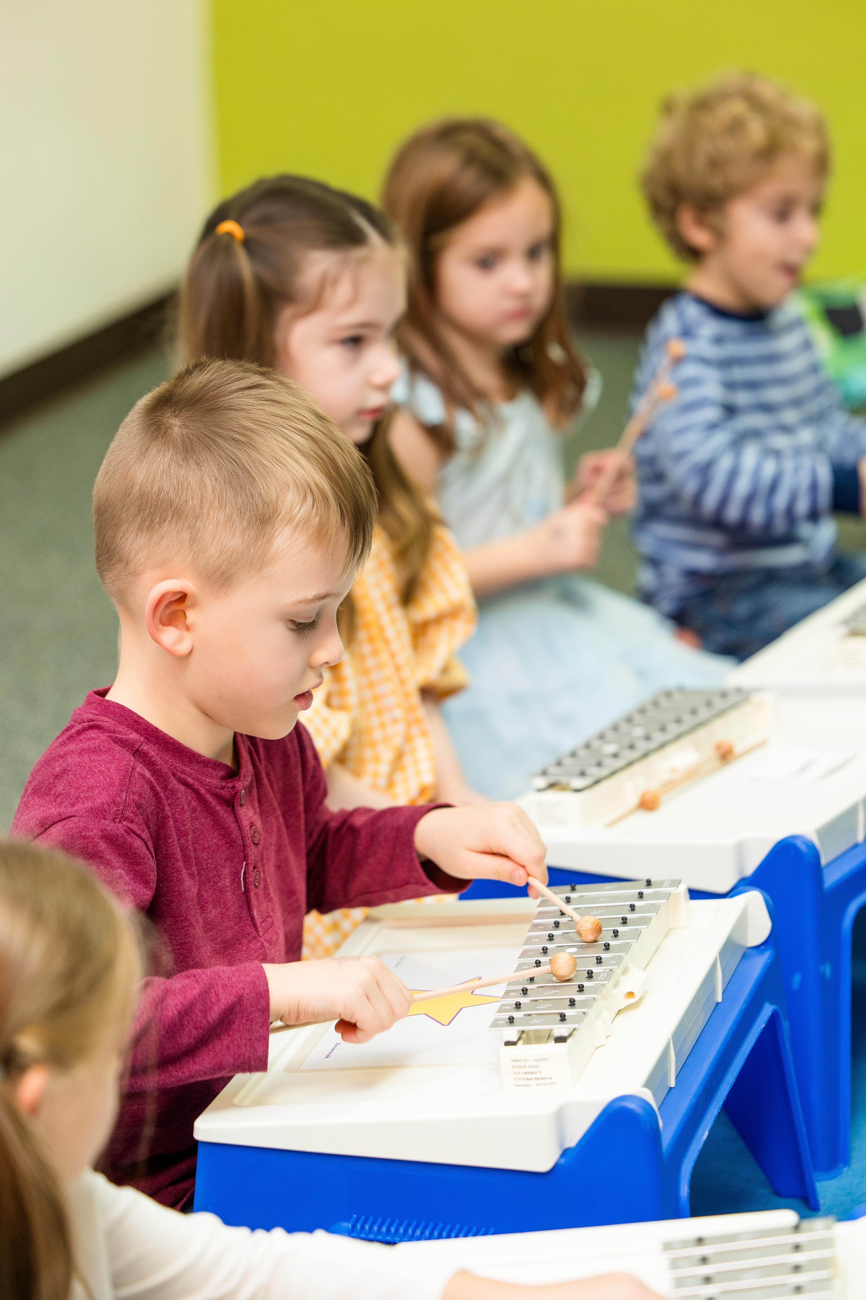 Throughout this exciting 2-year preparatory continuum, Kindermusik Musicians classes teach children how to actively read and write musical notation, play instruments such as the recorder, dulcimer and glockenspiel, provide an outlet to explore new genres, and give children what they need to succeed in future instrument-specific music lessons. It is the foundational step for when they take the leap to private music lessons.